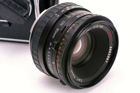 The best of the best...Dating to 2001 . The last variant of the 503CW with the ISO going up to 3200. I have just had the camera fully serviced by Classic v the official Hasselblad service centre. The A12(1998 ) has been fully serviced including new light traps . The lens is the top of the range CFE 80mm F2.8 Planar. The focusing screen is the best available being the Acute Matte D 42217 which has the split image and the grid lines. It really just does not get much better than this. The condition is all very near mint showing only the smallest signs of use.It is covered by a 6 month warranty.